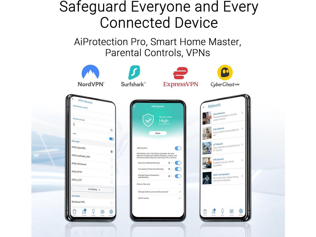 - 24/7 end-to-end protection with commercial-grade AiProtection Pro and advanced VPNs