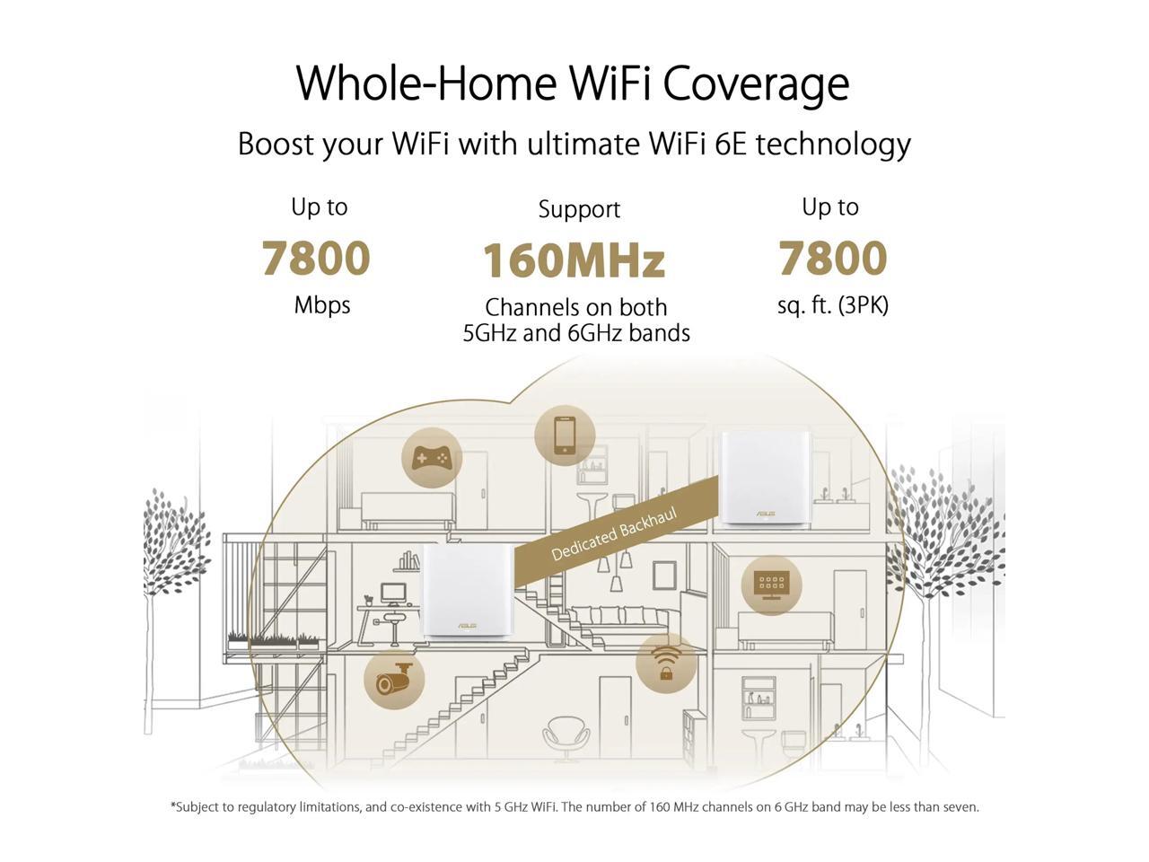 ASUS ZenWiFi Whole-Home Tri-band Mesh WiFi 6E System (ET8 3PK), Coverage up to 7,500 sq.ft, 6600Mbps, new 6GHz band, AiMesh, Lifetime Free Internet Security, Parental Control, Easy Setup, Instant Guard