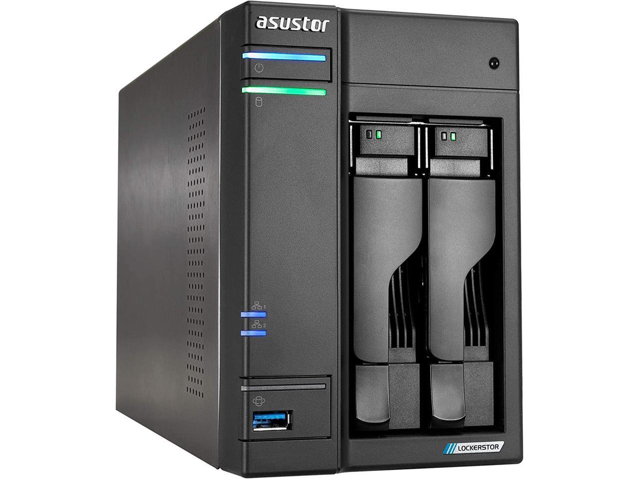 Asustor Lockerstor 2 Gen 2 AS6702T 2 Bay NAS, Quad-Core 2.0GHz CPU, Dual 2.5GbE Ports, 4GB RAM DDR4, Four M.2 SSD Slots (Diskless)