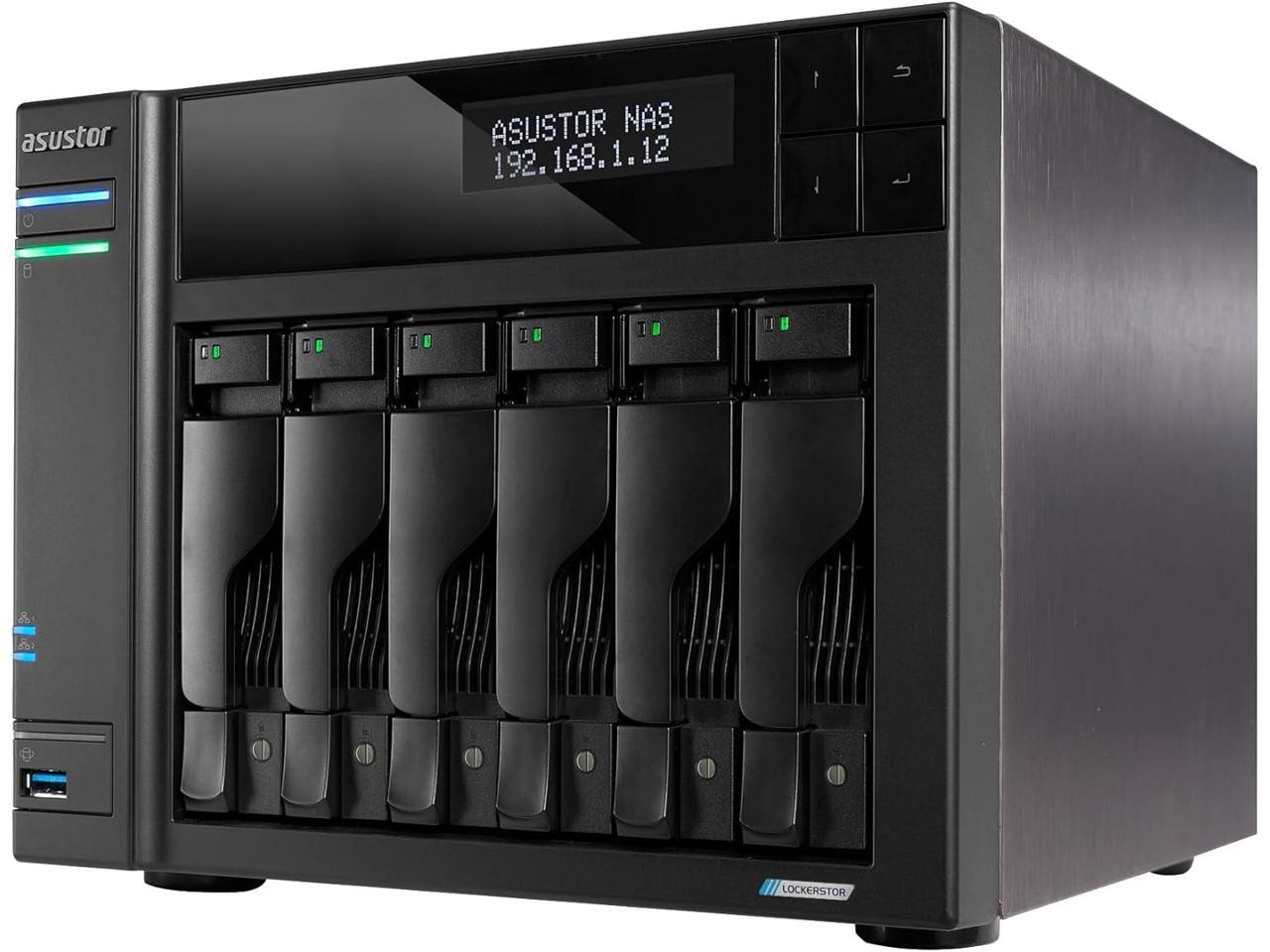 Asustor Lockerstor 6 Gen2+ AS6706T v2 6 Bay NAS - Quad-Core 2.0GHz CPU - Dual 5GbE Ports - 8GB RAM DDR4 - Four M.2 SSD Slots (Diskless)