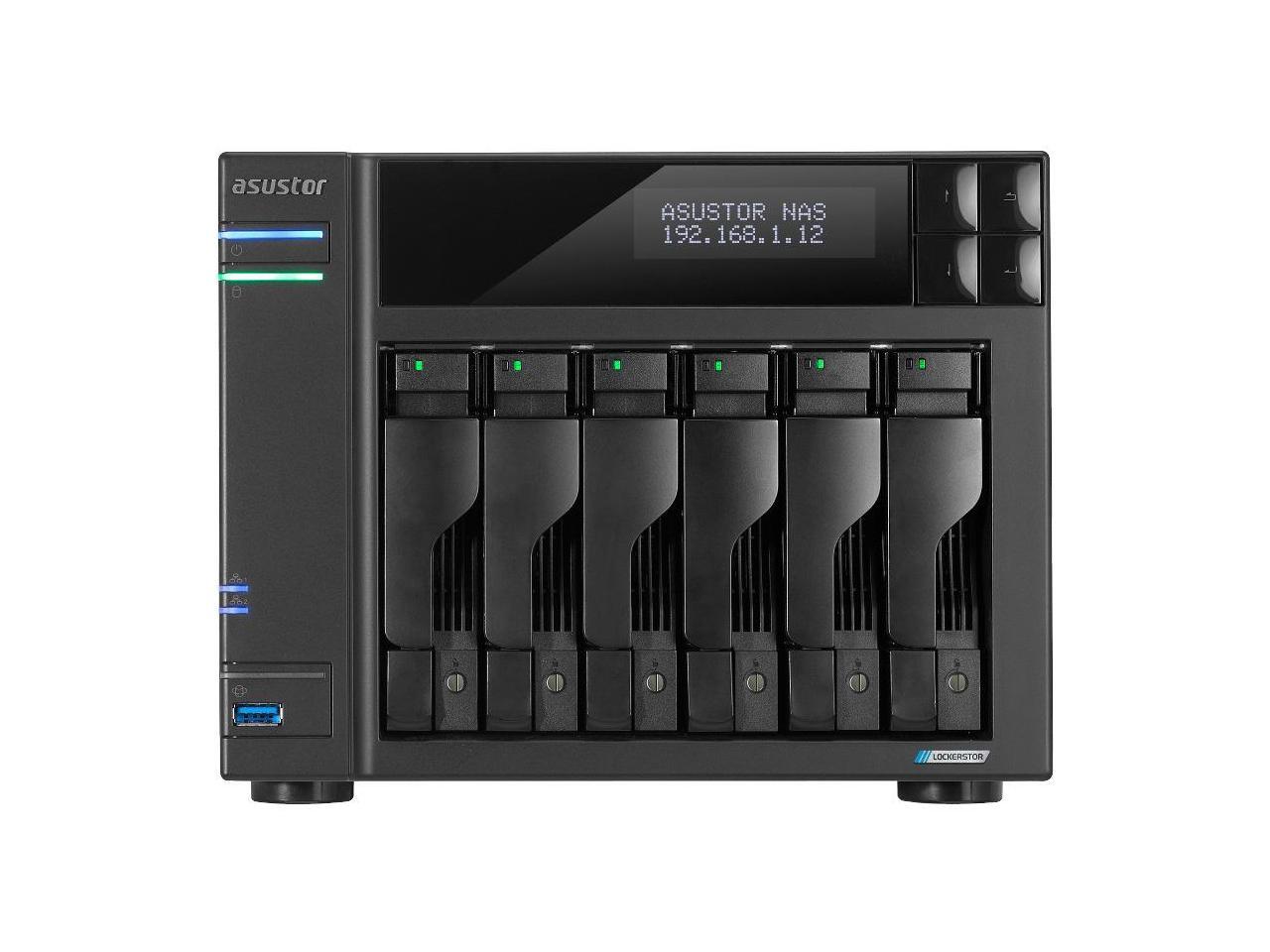 Asustor Lockerstor 6 Gen 2 AS6706T 6 Bay NAS, Quad-Core 2.0GHz, Dual 2.5GbE Ports, 8GB RAM DDR4, Four M.2 SSD Slots (Diskless)