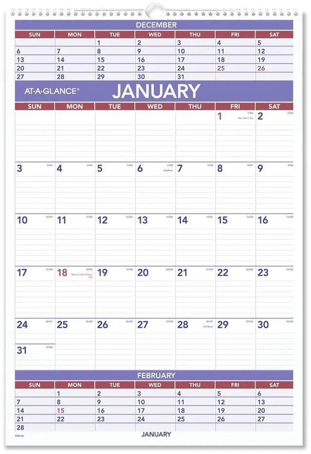 At-A-Glance Three-Month Wall Calendar 15.5x22.75 2026 PM628