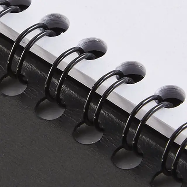 Planner features a black faux leather cover and twin wire binding to help prevent snags and secure pages