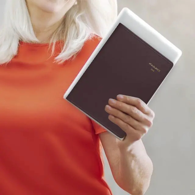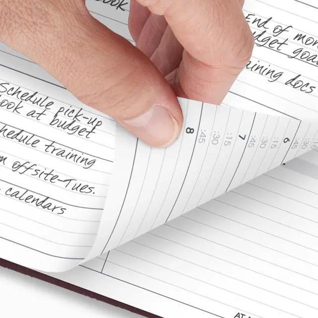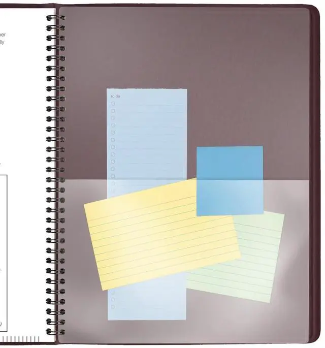 • Planner has a winestone faux leather cover and twin wire binding to help prevent snags and secure pages