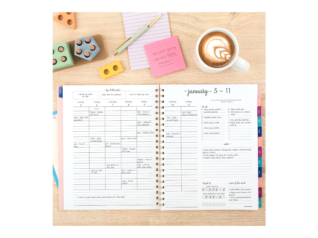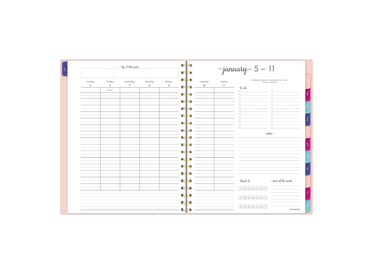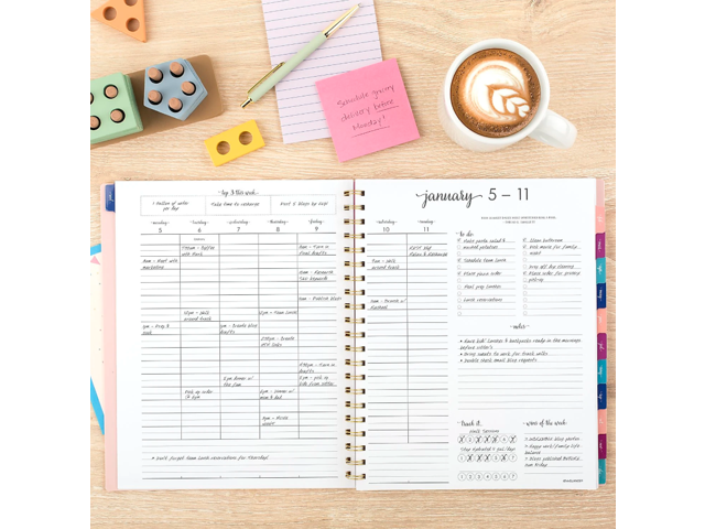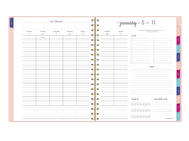 - Your week. Your way. Each week lets you organize appointments, create to-do lists, jot down notes, track goals and celebrate wins of the week. Pages measure 8 1/2" x 11".