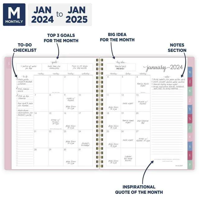 Harmony Weekly/Monthly Poly Planner 8.81x7.88 Pink Cover 13-Month Jan to Jan: 2026