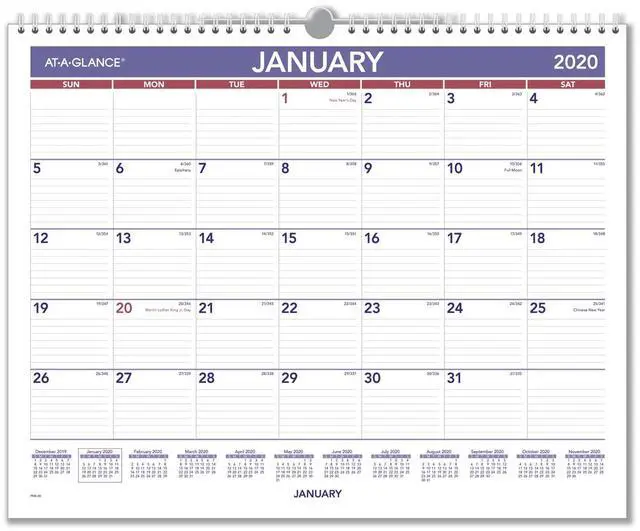 Monthly pages have ruled daily blocks and a full year of reference calendars for quick date checking. Pages measure 15" x 12". Daily blocks measure 2" x 1 5/8".