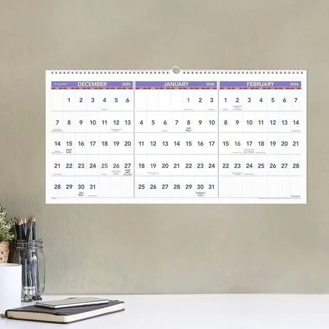 Great for use at the office or at home, the AT-A-GLANCE Three Month Horizontal Reference Calendar helps you keep track of important events, three months at a time. The horizontal orientation shows past, current and future months all on one page.