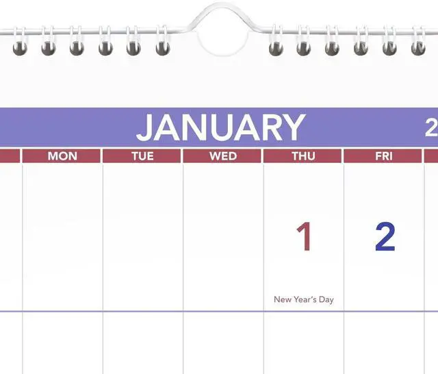 Federal holidays printed in red for easy identification