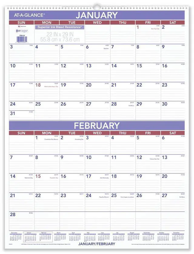 Future planning is always at your fingertips with the AT-A-GLANCE Two Month Wall Calendar. Features ruled daily blocks to help create and track plans and appointments.