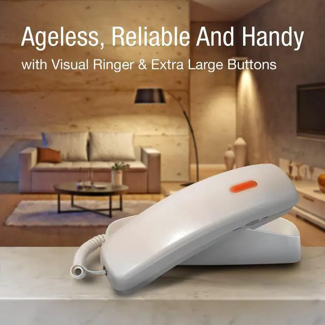 TRIMLINE 213 Corded Phone with Extra Big Buttons - Senior Friendly White Landline Phone, Visual Ringer, Lighted Keypad, Wall Mount, No AC Power Needed