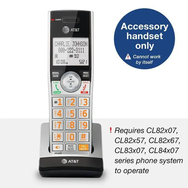 ** ADDITIONAL HANDSET ONLY ** Requires a CL82x07, CL82x57, CL82x67, CL83x07, CL84x07 series phone to operate. Accessory handsets can be placed anywhere in your home or office where having an electrical outlet - no phone jack is required. Convenient, flexible, and easy to use.