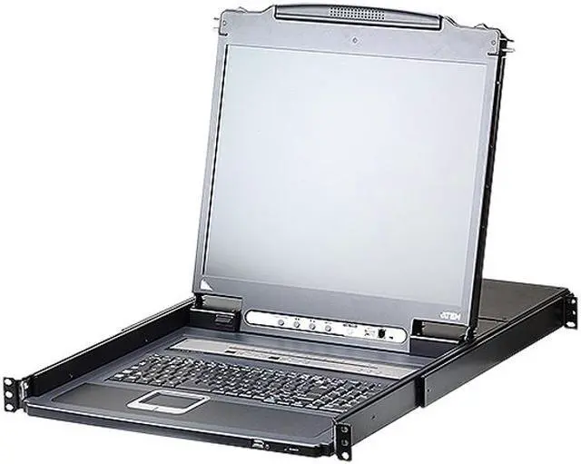 | Features | Exclusive LED illumination light - designed by ATEN to illuminate the keyboard and touchpad to allow visibility in low-light conditions Integrated KVM console with 17" or 19" LED-backlit LCD monitor in a Slideaway housing Space saving technology - up to two consoles (one bus) control up to 8 computers Daisy chain up to 15 additional units – control up to 128 computers from a single console (With compatible KVM Switches: ACS1208A, ACS1216A, CS1708A,CS1716A) Extra console port – manage computers from an external console (VGA monitor, USB or PS/2 keyboard and mouse) Superior video quality - up to 1280 x 1024 @75 Hz; DDC2B for the local console; up to 1920 x 1200 @ 60Hz / 24 bit color depth for remote sessions Dual Interface - supports computers and console with PS/2 or USB keyboards and mice LCD module USB port allows connected computers to access USB peripherals* Auto-sensing of station's position on daisy chained installations; no need for manual dip switch setting; front panel LED indicates station's position Hot pluggable - add or remove computers without having to power down the switch Keyboard and mouse emulation (PS/2 and USB) for smooth switching and simultaneous booting of multiple computers even when the console focus is elsewhere Supports multimedia USB keyboards for Windows, Mac and Sun Supports external USB mouse Video DynaSync™ - stores the console monitor's EDID (Extended Display Identification Data) to optimize display resolution Rack mountable in a 1U system rack LCD module rotates up to 115 degrees for a more comfortable viewing angle * The USB peripheral function only works with USB cable set connections. It will not work with PS/2 cable set connections. |