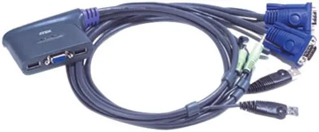 CS62U 2-Port KVM Switch has a handy design integrating with 6 feet of cables. It can control 2 servers via a single console.