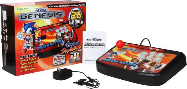 | Feature | The Arcade Master is an advanced table-top gaming console loaded with Classic SEGA Genesis Games including the wildly popular Virtua Fighter 2, Streets of Rage 1 & 2, Sonic 3D and 22 other SEGA games! Use the SD Card slot to expand your game playing options! Great joystick action!! - 16-bit graphics and sound quality - Arcade direction stick and buttons enhances gameplay - Plug-N-Play, no gaming system required - 26 pre-loaded Sega licensed games - Expandable game library through SD memory card slot - Ergonomic Design for Ultimate TableTop Arcade Experience - First Fighting Stick with Pre-Installed SEGA Games - Hyper Color Menu Display - Plug-in to TV and Play - SD Card Slot for More Games Download |