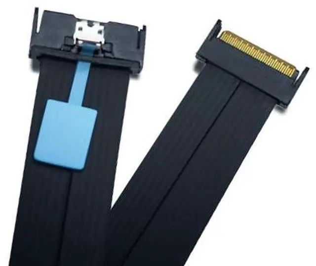 The Athena Power CABLE-MC8C8F25 is a 25cm MCIO 8i to MCIO 8i flat cable designed for high-speed PCIe/NVMe connections between backplanes and host adapters or motherboards. Its ultra-thin 0.75 mm profile and flexible ribbon design make it easy to route in dense 1U/2U systems while maintaining signal integrity. Silver-plated copper conductors and fluoropolymer insulation support 32 GT/s performance.