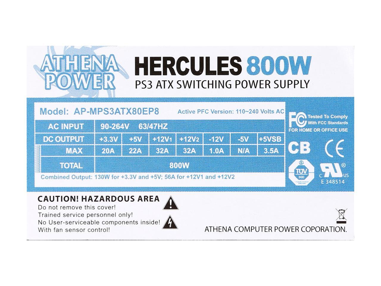 Athena Power AP-MPS3ATX80EP8 800W MicroPS3 (118mm Length)/PS2 Single EPS12V/ATX12V IPC Server Power Supply - 80PLUS Bronze - ActivePFC - OEM