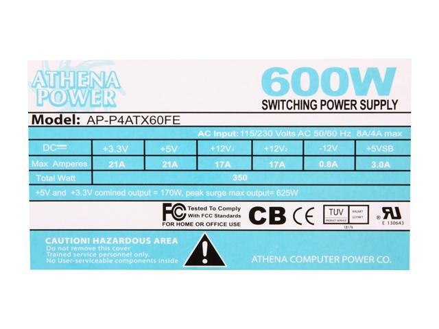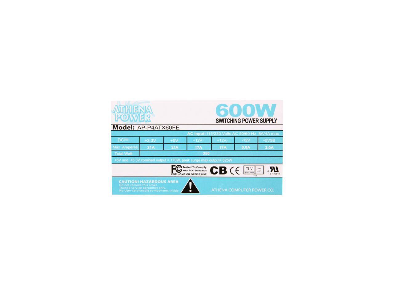 Athena Power AP-P4ATX60FE 20+4Pin 600W Single EPS12V V2.91 SLI and CrossFire Ready Supports Intel Core i7 Server Power Supply