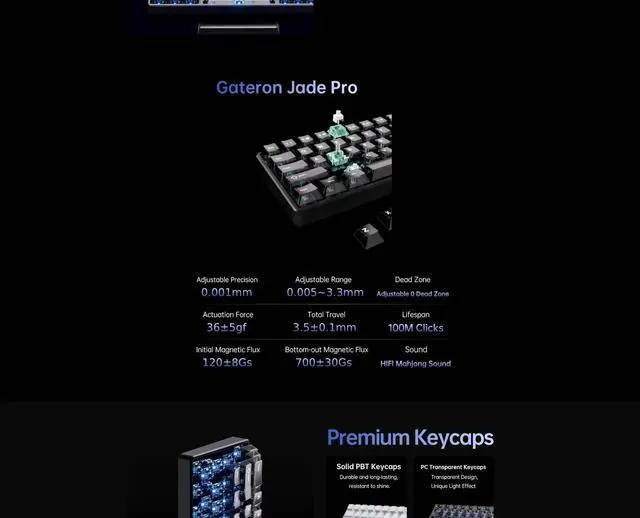 • KEYCAP OPTIONS & COLORS: Cherry profile PBT/PC keycaps; color variants include Black, White, and Blackberry.