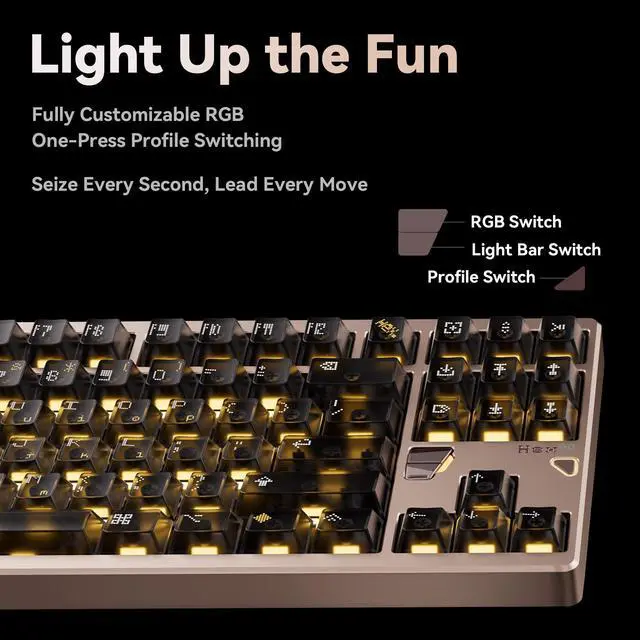 RGB Lighting: South-facing per-key RGB, 16M colors, 20+ presets