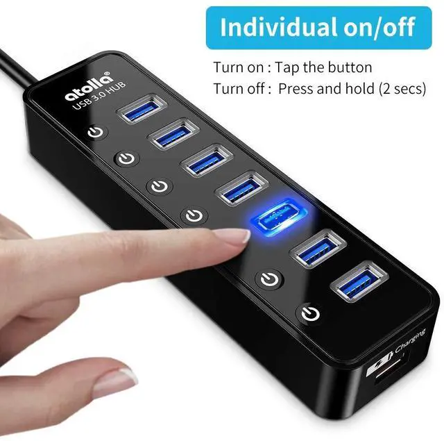 This atolla USB 3.0 hub can expand 1 USB 3.0 port to 7 external USB 3.0 data ports for more USB devices, sync data at blazing speeds up to 5Gbps in no time.