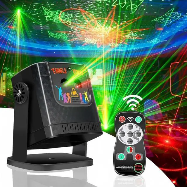 Vibrant LED Projection Effects Equipped with high-intensity LED beads, this party light projects bright and crisp red & green patterns. These vivid lighting effects shift and mix automatically to create a dynamic, high-energy atmosphereperfect for KTV, dance parties, and holiday celebrations with eye-safe technology.