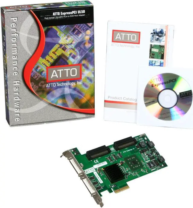 The ATTO ExpressPCI UL5D dual-channel Ultra320 host adapter offers the highest SCSI performance for demanding server and professional workstation environments. The ExpressPCI UL5D boasts data-transfer rates of up to 640 MB/sec. and offers support for PCI Express interconnect a high-speed (serial) bus interface. This host adapter is an ideal fit for high performance video/audio editing applications as well as Enterprise servers and high-end workstations running high-volume, mission-critical applications such as messaging and databases. Only ATTO ExpressPCI host adapters feature the exclusive Advanced Data Streaming (ADS) Technology that allows fast and efficient data movement with reduced CPU utilization.