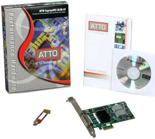 The ATTO ExpressPCI UL5D Low-Profile Ultra320 SCSI host adapter is the industry's first low-profile PCIe SCSI host adapter. Utilizing Ultra320 SCSI and next-generation PCI Express (PCIe) technology. With throughput of up to 320 MB/sec. per channel for a combined speed of up to 640 MB/sec., the ATTO ExpressPCI UL5D Low-Profile SCSI host adapter is ideal for integration into enclosures where space is at a premium. Easy to deploy, manage and scale, the UL5D Low-Profile host adapter is the ideal solution for data-intensive environments such as 10-bit high definition video, transactional database applications, email servers and large server farms.