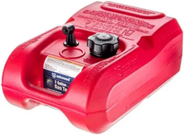 Fuel tank Automatic vacuum valve ensures proper fuel flow and eliminates the need for manual vent Low permeation tank virtually eliminates fuel evaporation and fuel loss. Compatible with 1/4- NPT fuel fittings Ethanol and Alcohol compatible For use with Attwood Fuel Kits EPA & CARB Certified 3 gallons Length: 7.37Width: 11Height: 16.5