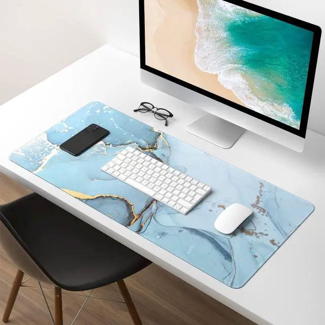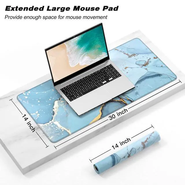 KEHIPI Extended Gaming Mouse Pad, XXL Large Desk Pad 30 x 14 Inch, Big Computer Keyboard Mousepad, Waterproof Mouse Mat with Stitched Edges and Non-Slip Base for Women Office Gaming, Blue Marble
