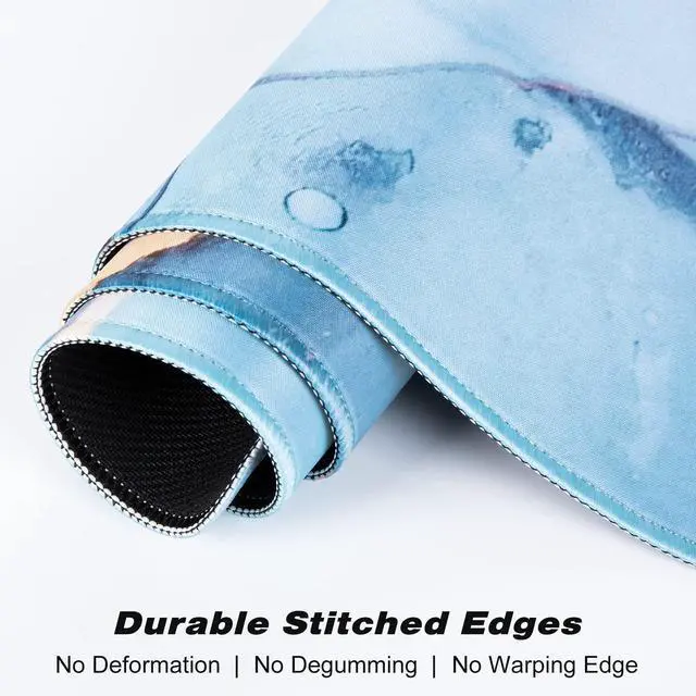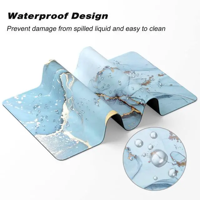 • Waterproof & Easy to CleanWater resistant coating can effectively prevent accidental damage from spilled liquid, it is waterproof, dust-proof and sweat-proof. When liquid splashes on the mouse mat, it will form into water drops and slide down. Easy to clean with a wipe and will not delay your work or game. The full desk mouse pad great locking-color effect and it will not fade with repeated cleaning.