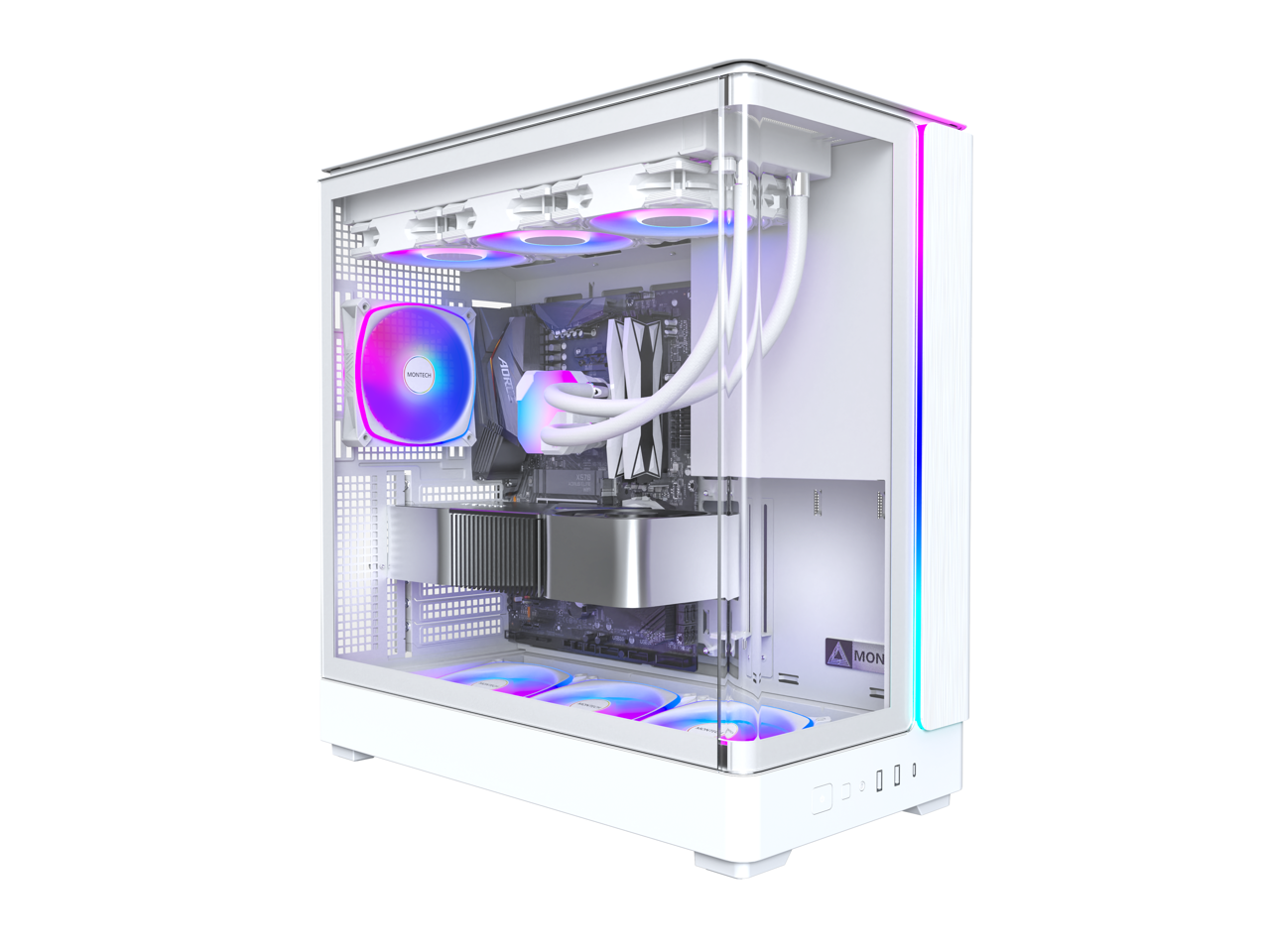 MONTECH KING 45 PRO ATX PC Case, Curved Panoramic Glass, Chimney Airflow, 360mm Radiator Support, Compact Build for High-Performance Systems, 6 ARGB PWM Fan Pre-Installed with Fan Hub, White