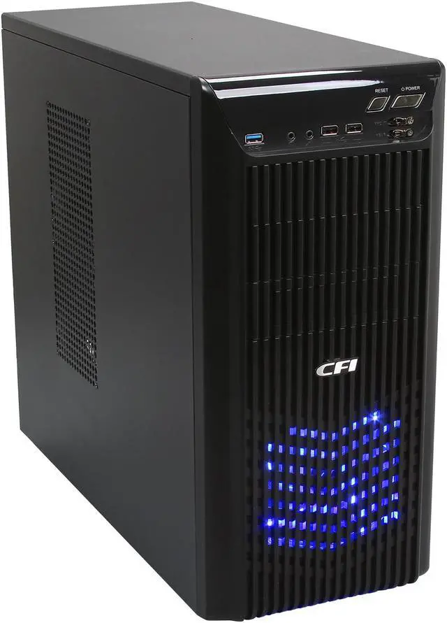 The CFI CFI-A0991 combines quality, features and low price to deliver excellent value. The front panel includes two USB 2.0 ports, one USB 3.0 port and two jacks for audio. Inside are a total of eight drive bays –four 5.25” external ODD bays and four internal 3.5” drive bays. One 120mm front LED fan, one 120mm rear fan and two 120mm side LED fans draw air through the case smoothly.