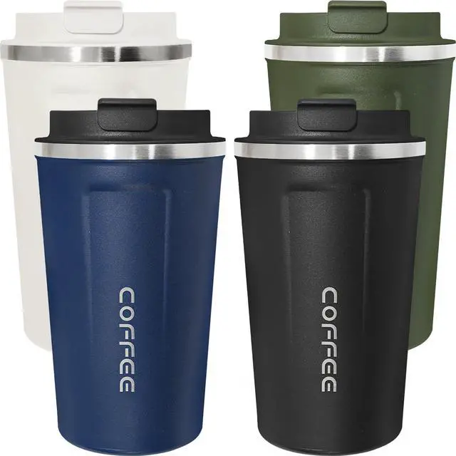 VALUE PACKAGE: Comes with 4 pieces insulated coffee mug with lid in 4 bright colors, black, white, blue and green, available in 380ml/12oz and 510ml/17oz to choose, which is compact and lightweight enough to fit in your car cup holder. This portable coffee cup is suitable for indoor and outdoor, office, party, traveling and many other occasions
