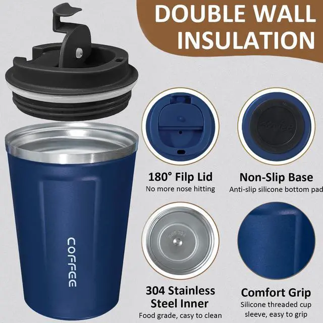 EASY TO DRINK: The travel coffee tumbler features an flip-top opening with a leak-proof top, which can be easily opened and closed with one hand while driving, making it perfect for on-the-go coffee lovers. Whether youre commuting, hiking, or running