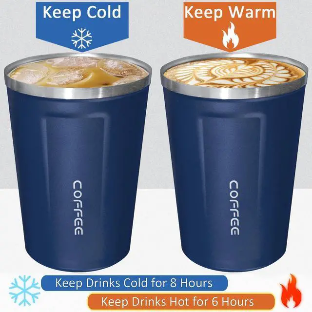 MATERIAL: The insulated coffee mug with lid is crafted from high-quality and food-grade stainless steel with a double-wall insulation design, keeping drinks hot for 6 hours and cold for 8 hours, ensuring beverages stay at the desired temperature for an extended period , and the lid of travel coffee mug is made of food-grade silicone, BPA free