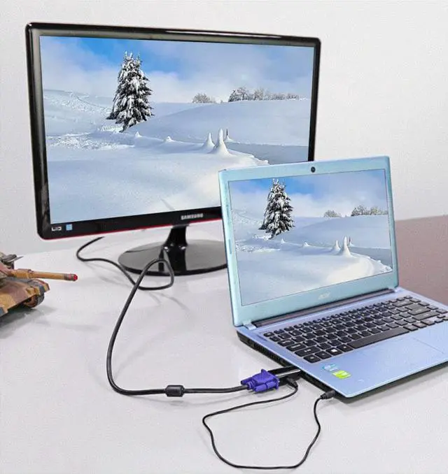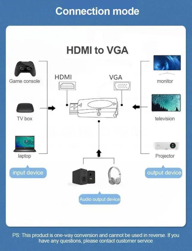 This HDMI to VGA adapter is designed for connecting a laptop, desktop, or other devices with HDMI port to a VGA display devices like monitor, projector, or TV. Simply connect the HDMI male end with your PC or laptop and then link it to VGA display devices via your VGA cable. Extend your screen in a moment, supports resolution up to 1920x1080 Full HD, enjoy a better viewing experience.