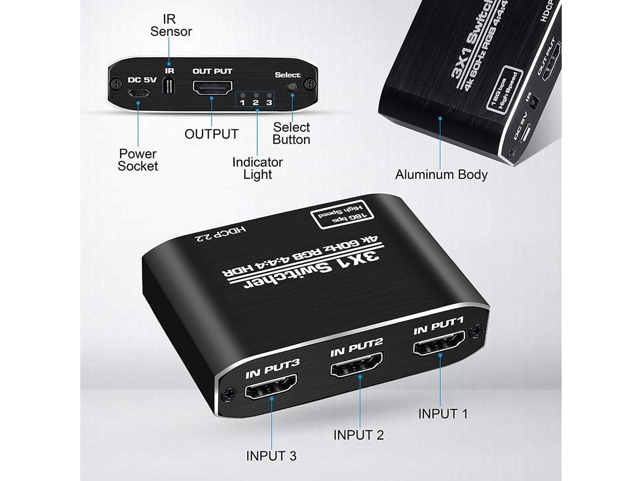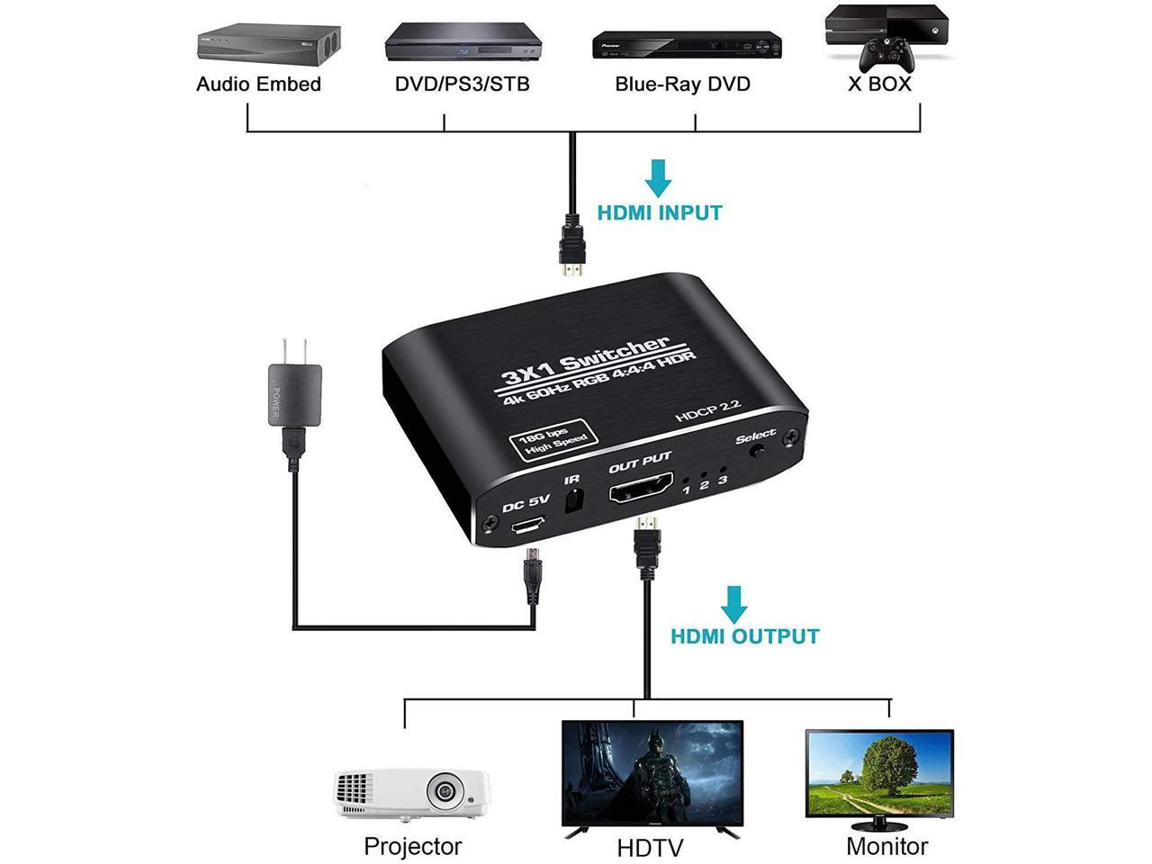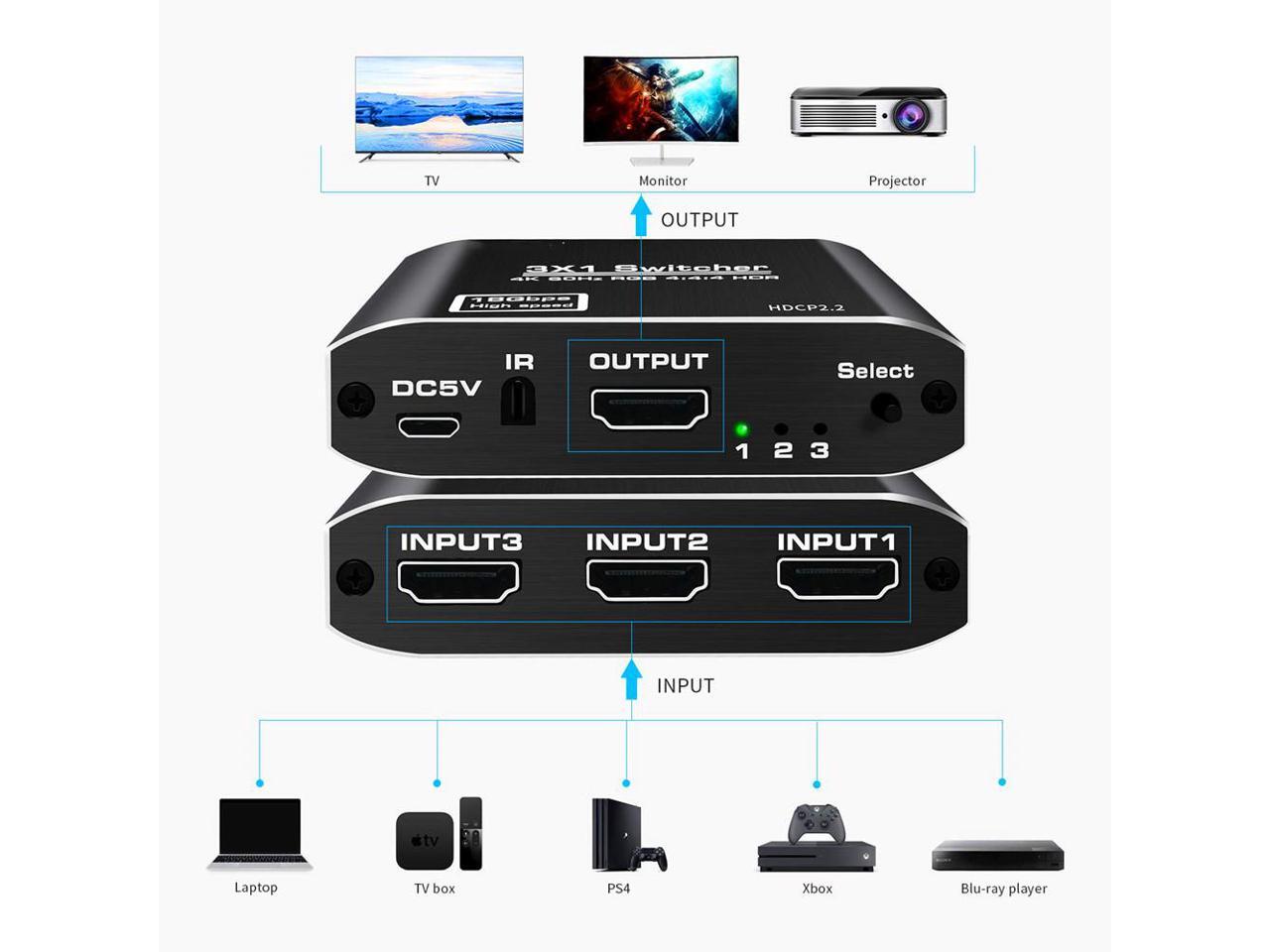 - The Latest 3 in 1 Out HDMI Switch : AUBEAMTO 4K@60Hz HDMI 2.0 Switcher expand 3 HDMI Ports on your TV &HD display for more HDMI devices,Seamlessly switch between games, TV, PC, etc HDMI port devices.No complicated setup and drivers required, plug and play.