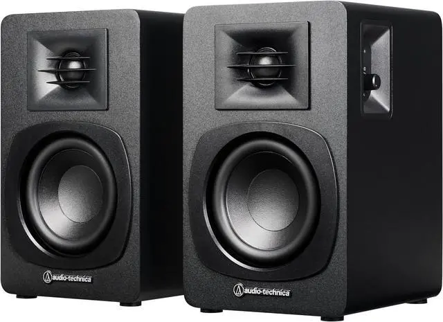 Audio Technica AT-SP3X Bookshelf Speakers - Bluetooth 5.3 - Multipoint Pairing - Plug & Play Turntable Solution - Full Range Audio - 76mm ( 3.0 ) × 2 Speaker Units - 27mm ( 1.1 ) × 2 Tweeter Units - 55 to 20000Hz Frequency Response - RCA Pin Plug × 2 Inputs - 41 Degrees F to 104 Degrees F