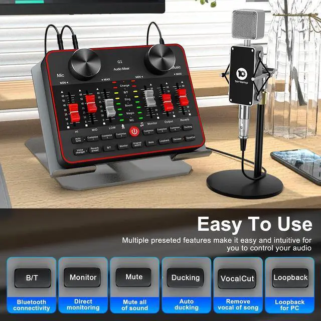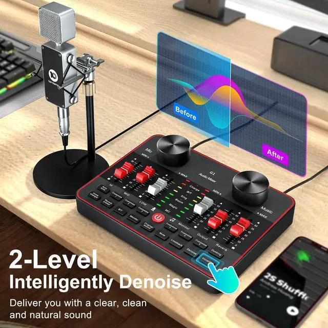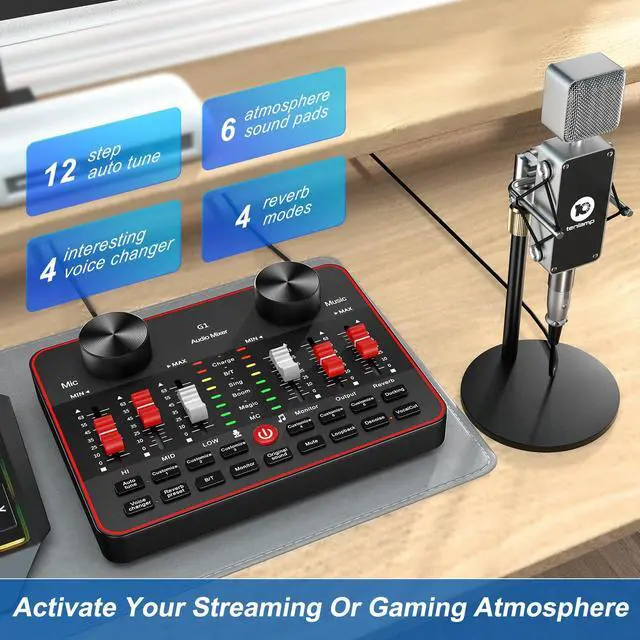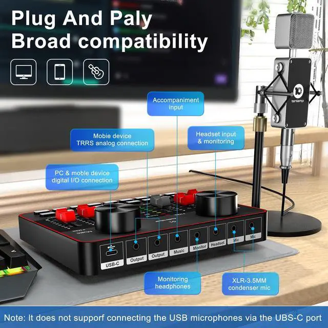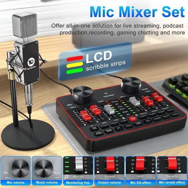 Streaming Device Dj mixer easy to use On SmartphoneMobile phone live streaming break the limitation of space, podcast microphone bundle work well with phone plug and play dj mixers equipment easy to operate and adjustment podcast bundle are visualized. battery is enough to work long.audio console work well on PC computer/laptop/smartphones tablets. Great for online podcast/voice over