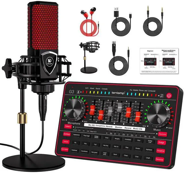 G3 Audio Mixer for Podcast Equipment BundleLive Sound Card for StreamingAudio Interface DJ Mixer Sound Card/Board Condenser Microphone for Tiktok Gaming Video Content Creator