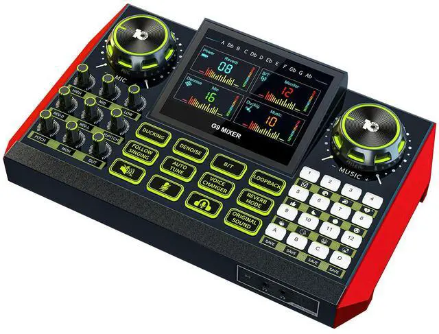 [EASY TO USE]- G9 sound effect board allows you do all of your audio mixing with onboard hardware. The streaming sound board allows individually control microphone, music, headphone, main output, 3-band EQ, dual reverb, pitch, and more. No need fiddly drivers and complex setup, adjust audio effortlessly, enjoy deeper voice customization, take your podcasting and streaming to new heights, shine your talent to the world.