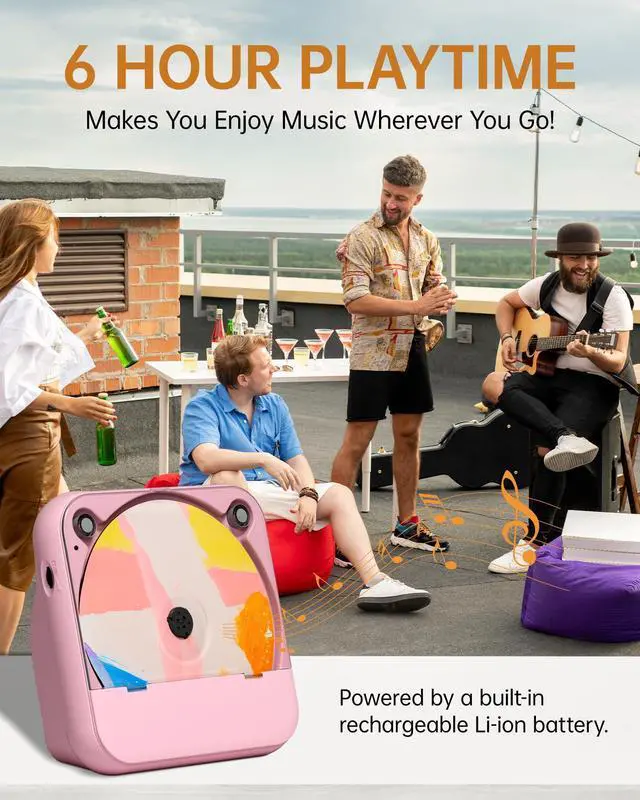 Built-in 2000mAh battery, no need to constantly plug in the charging cable to the CD player while playing music.