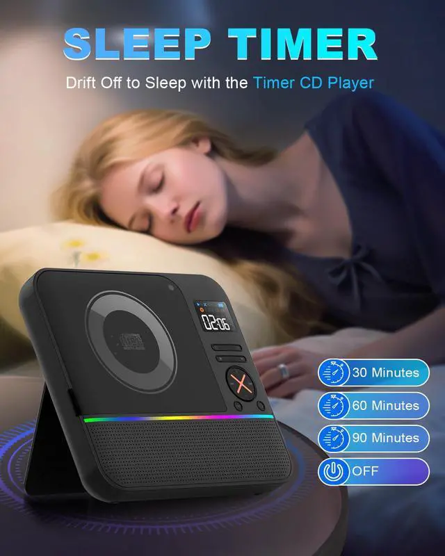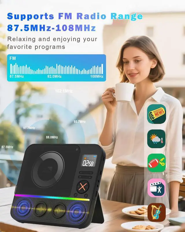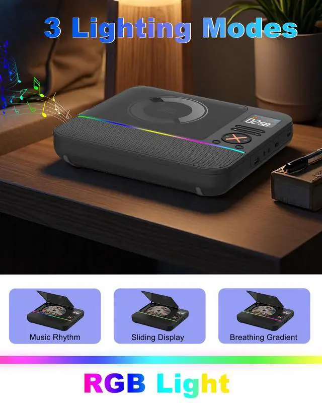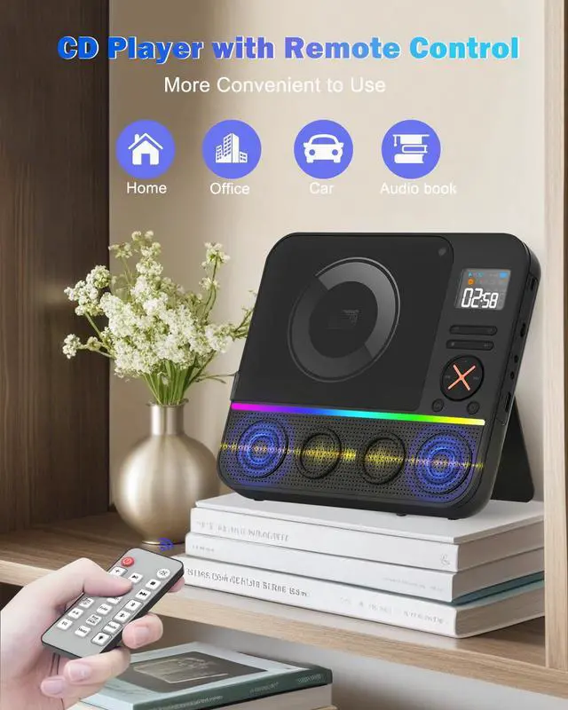 Portable Desktop CD Player with Bluetooth Boombox CD Music Players FM Radio & RGB Light, LED Screen, Built-in Dual Speakers for Home