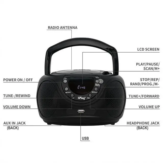 Enjoy your music with the hPlay CD player boombox with AM/FM radio.