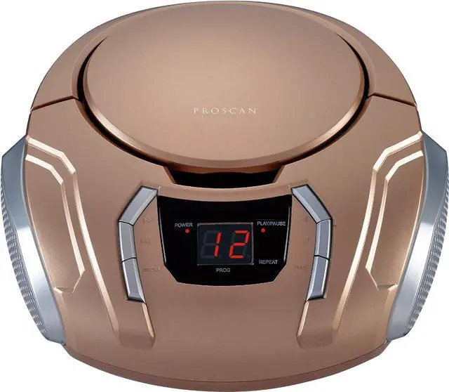 Tune into SYLVANIA's Champagne Portable CD Player with AM/FM Radio. This AM/FM radio and CD player has 20-track memory, antenna and headphone jack. It even includes a built-in auxiliary input.