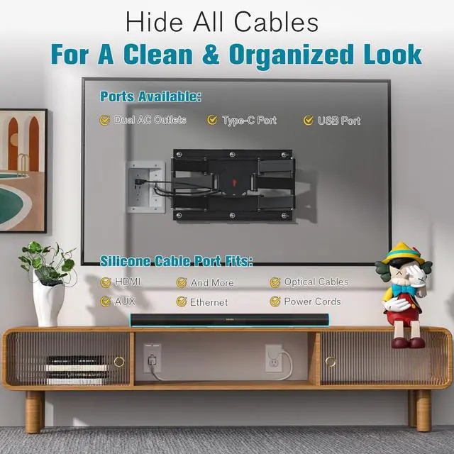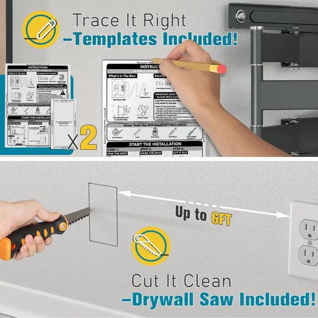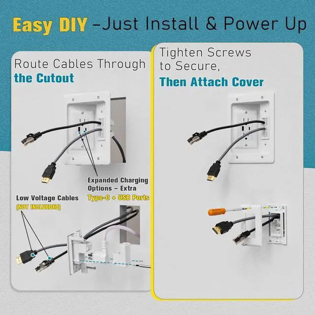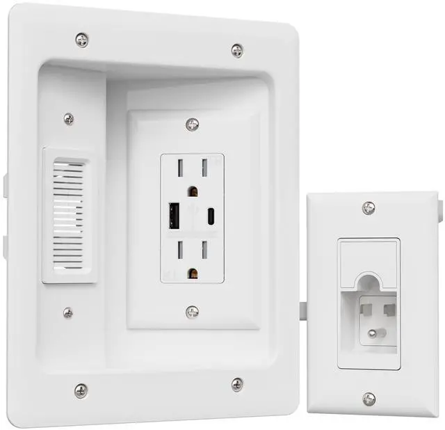 Cable Management Box with Dual Outlet/USB+Type C Power Port/Extension Cord/Drywall Saw