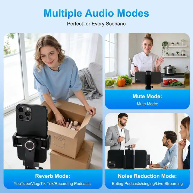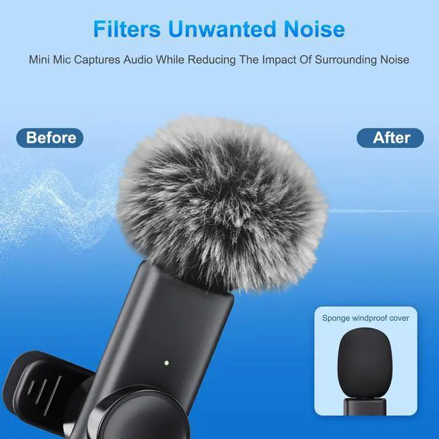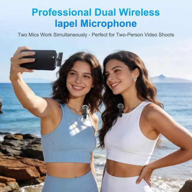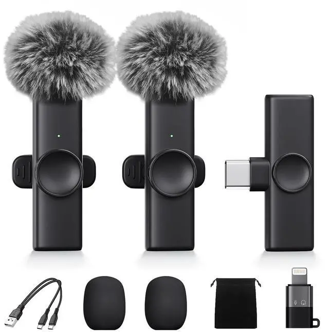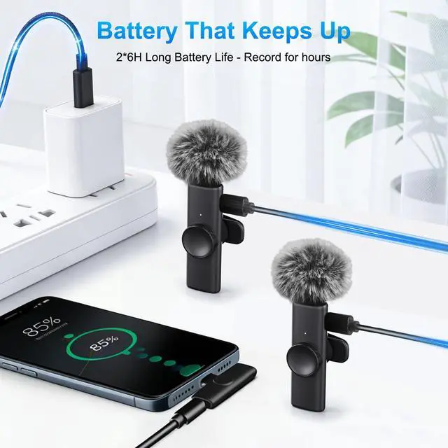 Crystal-Clear Audio & Intelligent Noise Reduction Our lavalier microphone is equipped with a high-sensitivity microphone core and advanced noise reduction chip to minimize background interference. It captures clear, detailed sound for video recording, interviews, podcasts, and even ASMR. This mini microphone comes in a 2-pack design, allowing two people to record at the same time with these dual wireless mics.