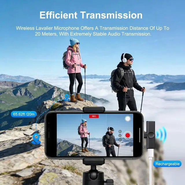 Easy Auto-Pairing & Plug & Play This wireless lavalier microphone requires no adapters, no Bluetooth, and no additional apps. Simply plug the receiver into your device, and the mini mic will connect automatically in seconds. As a professional microphone for iPhone and mic for iPhone, this wireless microphone for iPhone delivers ultra-easy operation for all content creators.