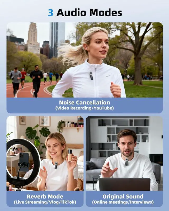 Utilizing 2.4G wireless transmission technology, it delivers stable and lossless audio signals. The built-in AI noise cancellation algorithm effectively eliminates ambient noise, ensuring clear and prominent voice pickup. It also supports reverb effects, adding flair to singing or voice-over performances.